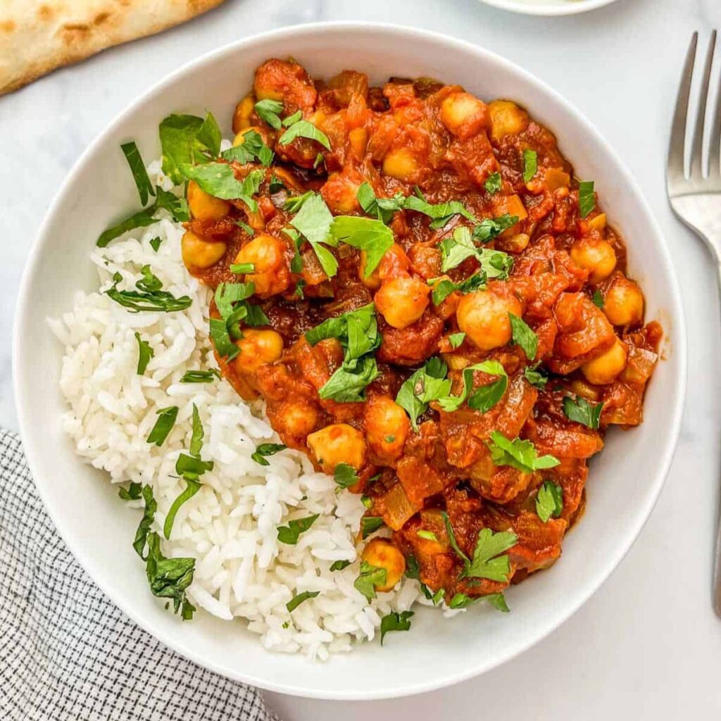 Chana Masala (or Chole) is a tangy, earthy, and protein-rich North Indian curry.5 It features chickpeas simmered in a tomato and onion gravy, heavily seasoned with unique spices like amchur (dried mango powder) and anardana (dried pomegranate seeds) for a signature sour flavor.