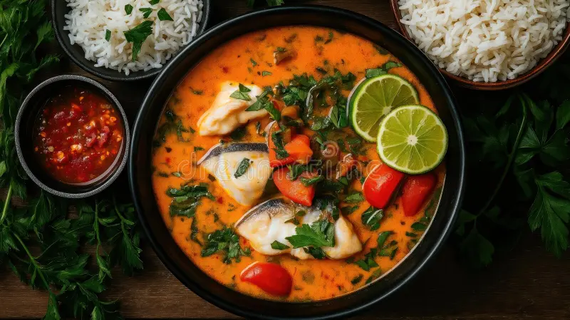 Moqueca is a vibrant, fragrant Brazilian seafood stew. Unlike Mediterranean stews, this uses Dendê Oil (red palm oil) and coconut milk, creating a unique tropical flavor profile that is both creamy and bright.