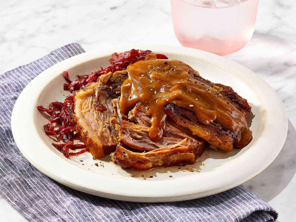 Sauerbraten is a traditional German pot roast, famous for being marinated for several days in a mixture of vinegar, wine, and spices. The marinating process tenderizes the meat, which is then slow-cooked until meltingly tender, and the resulting pan juices are thickened into a rich, sweet-and-sour gravy.