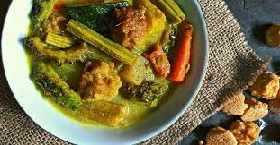 Shukto is a unique Bengali mixed vegetable curry known for its bitter-sweet flavor profile. It combines numerous mild vegetables with a small amount of bitter gourd (or fenugreek seeds) and a sauce thickened with poppy seed and mustard paste, providing a light, digestive quality.